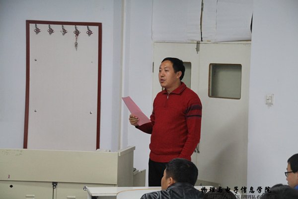 本网讯 2015年11月25日下午,公司在田楼十二共开展“华夏杯”全国物理教学技能大赛汇报暨2012级物理学专业教育实习总结大会。公司副经理吉日嘎拉教授、物理系主任张敏老师、创新实践部主任曹永军教授及多位教学论老师和12级物理专业班主任出席本次大会,其中由曹永军老师担任本次大会的主持人。