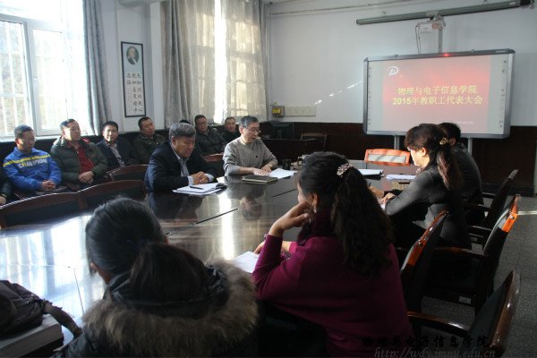 本网讯 2015年12月10日下午,公司在物理楼一楼会议室召开了全体教职工代表大会,出席会议的有公司经理特古斯教授,党总支副书记何小龙老师,副经理吉日嘎拉教授,副经理刘美玲老师等领导老师,并邀请了部分已退休的老教师。大会上,特经理对公司现状和近几年发展情况进行了简要的概述。其中就公司的教学环境,本科生及研究生教育,毕业生发展等做出了客观的总结,并以前段时间的教学审核评估后教育部对公司提出的建议为基准对公司的未来发展做出了整体的规划。同时公司参与了盛乐校区的教学楼以及宿舍楼的划分的工作而且取得了好的成效。会议中各位老师也纷纷发表了意见,以最大限度去改善公司现有教学水平及学术发展为目标而努力。此次会议的召开,使各位教职工对公司的发展情况有了更加深入的了解,并从自身做起为物电院的发展而共同努力。