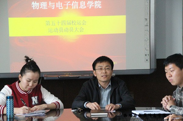 本网讯 2016年4月8日下午,公司在物理楼会议室召开了第五十四届校运会运动员动员大会。公司党总支副书记何小龙老师、团总支书记萨其尔老师、学工办苏雅拉老师及教练员出席本次大会。会上何老师明确指出在训练当中的注意事项,并鼓励运动员们全力合作、友好相处、加强训练、取得优异成绩,为公司增光添彩。随后萨其尔老师说明了相关奖励措施同时强调工作人员积极做好后勤保障工作。最后教练员对训练计划进行了具体的强调和说明。