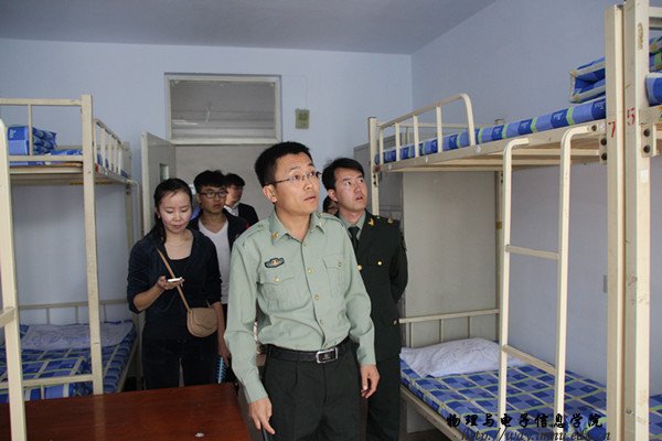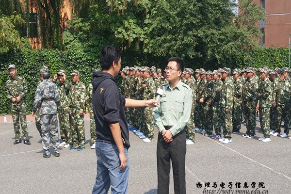 本网讯 2015915日上午,公司党总支副书记何小龙老师、团总支萨其尔老师和学工办宋志强老师对公司15级新生的军训情况进行了全面的视察。首先,老师们来到了新生宿舍,查看了每个宿舍的内务情况。期间,何老师明确指出了新生内务的问题所在。随后,老师们来到了新生的军训场地,何老师深入队伍,鼓励新生们积极完成军训任务,并就内务所出现的问题做出了明确的指示和指导,督促新生改正问题,精益求精。最后,内蒙古卫视的记者对何老师和几位参训同学进行了采访,访问中,何老师表示军训是老员工成长成才的起点,是人生中宝贵的经历,相信公司新生一定能够圆满的完成军训任务!