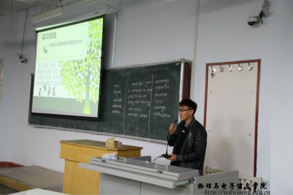 本网讯 2015年1015下午,公司在田楼召开12级电子专业员工实习总结大会。公司副经理刘美玲老师、电子系主任梁学军老师、副主任海鹰老师、12工一班主任姜永静老师、12工三班主任其木格老师出席本次总结大会其中梁学军老师担任大会主持。