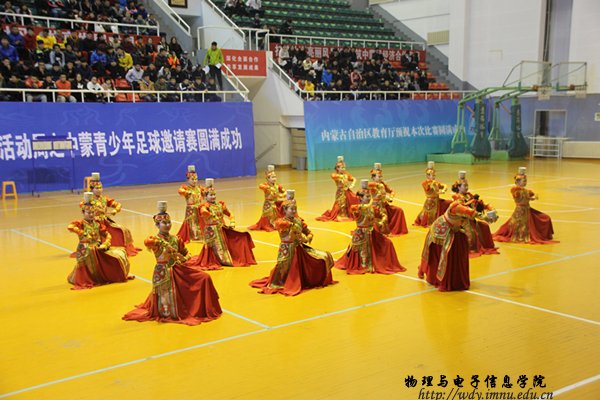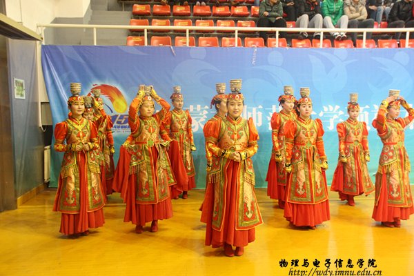 本网讯 2015年11月23日晚于篮球馆,应体育公司的邀请,公司的那荷雅、张双全等十四名同学在“奋进杯”篮球赛开幕式上以饱满的热情表演了舞蹈——《祝福》。随着优美的音乐与曼妙的舞姿,凭借着蒙古舞独特的美和博大的精神震撼着现场的每一位观众,并获得了观众们的热烈掌声。