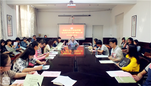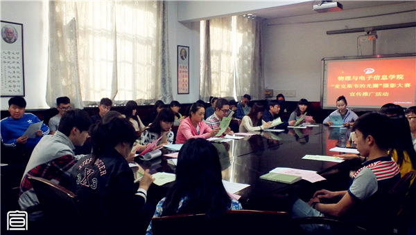 作品申报后,工作人员将照片和海报进行初步筛选后,通过物电院微信公众平台网上投票和邀请老师和选派每班代表现场打分两者相结合的方式进行评选,并将其以上结果按照60%40%比例纳入到总成绩进行最后评定。