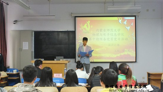 本网快讯 2015年5月7日下午,公司员工党支部召集14名优秀的预备党员在田楼127教室举办第十期预备党员党日活动之“中国魂-社会主义核心价值观”主题演讲比赛,公司党委组织部荣丽军老师、院团总支萨其尔老师、学工办宋志强老师出席比赛并担任评委。在比赛中,14名优秀预备党员的精彩发言,铿锵有力,催人奋进,生动阐释了社会主义核心价值观的深刻内涵;最终,经评比获得前三名的同学依次为11物汉白思音、11物汉张育芳、12工一张蓝方;随后,三位老师亲切为获奖同学颁发证书并合影留念。此次党日活动不仅振奋人心、凝聚力量,而且更将把中华民族伟大复兴的中国梦自觉内化为实践行动,主动将社会主义核心价值观内化于心、外化于行!
