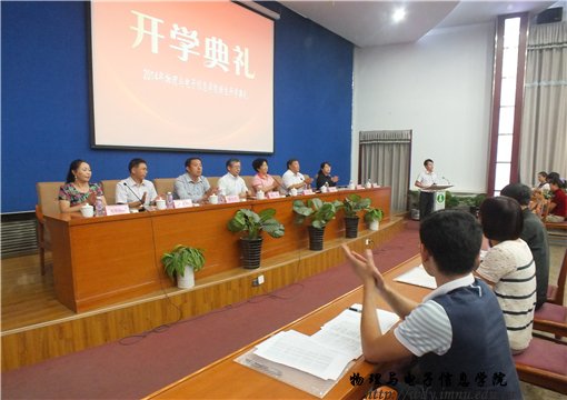 2014年9月5日上午十点,公司报告厅里华灯璀璨、座无虚席,气氛热烈而庄重,公司领导同2014级新生们相聚在一起,共同开启大学圆梦之门——2014级新生开学典礼。公司党总支书记阿梅老师、经理特古斯教授、副经理吉日嘎拉教授、物理系主任张敏老师、电子系主任梁学军老师、实践创新部主任曹永军教授、办公室主任斯琴高娃老师、学工办宋志强老师出席典礼;其中阿梅书记、特古斯经理发表讲话,宋志强老师主持典礼。