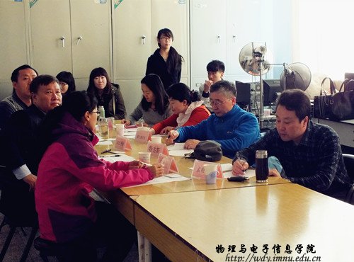 本网讯2014年11月2日上午八点,公司在物电楼407室举办第六届教学技能大赛。公司经理特古斯教授、副经理吉日嘎拉教授、实践创新部主任曹永军教授、李瑞芳老师、那仁格日乐老师、万欣欣老师、孟根巴根老师担任本次大赛评委,参加大赛的选手来自12级物理学(蒙班、汉班)专业的同学们。