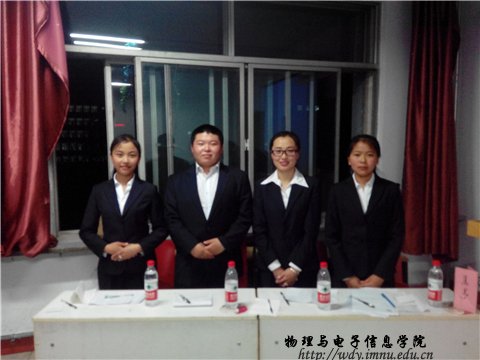 2014年4月28日晚七点,“盛乐杯”辩论赛赛罕区决赛在田楼223教室如期举行,汉语组决赛由于对方弃权,公司提前进入决赛,公司蒙语组辩手作为正方和化学与环境科学公司的反方辩手围绕“真理是否越辩越明”这一辩题展开激烈舌战。最终,公司蒙、汉语组双双顺利晋级总决赛。