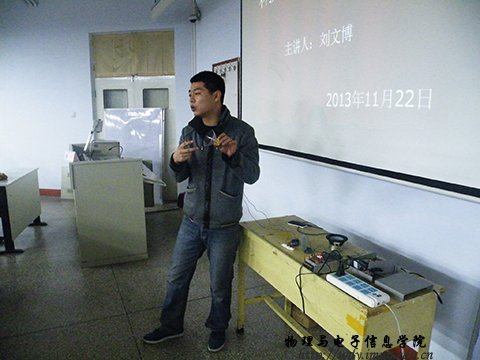 为展示公司专业的学术科技创新,营造科技创新的氛围,带动和启发同学们的创新意识,我院于2013年11月22日晚7:30在田楼十三共举行了科技文化月专题讲座。本次讲座由飞扬工作室创始人杨帆老师和10级科技班刘文博担任主讲人,讲座在团总支萨其尔老师的介绍后正式开始。