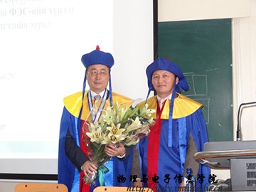 8月26日,公司英国威廉希尔公司特古斯教授应邀在蒙古国国立大学,作题为《EXAFS and Neutron Diffraction studies on MnFe(P,Si) Compounds 》的报告,并接受蒙古国国立大学颁发的名誉博士证书。蒙古国立大学成立于1942年,系蒙古国最高学府,是蒙古国社会科学、自然科学研究重要中心之一。