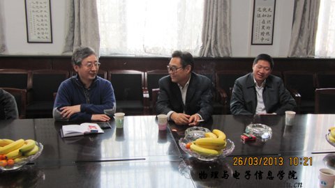 首先,特古斯经理从公司简况,学科发展、人才引进、院庆、日常管理以及下一步的工作思路等方面向陈书记作了重点汇报。在认真听取公司的工作汇报后,陈书记作了重要讲话。他对物电院近年来良好的发展势头,清晰的工作思路表示肯定,并对近年取得的成绩给予高度评价,同时也为公司的未来发展和定位提出了宝贵的意见。