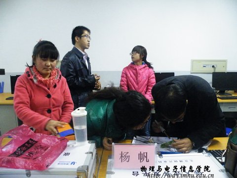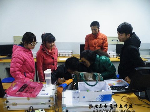2012年11月24日晚7点,杨帆老师在物电楼215室为本次科技文化月申报作品的同学进行现场指导。