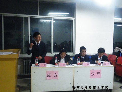 2012年11月28日晚公司在田楼223室成功举办了2012级新生“关爱生命,共建平安校园”辩论赛半决赛。比赛分为两场,担任第一场比赛的评委有生活部部长马金辉,外联部部长以及文艺部副部长鲁博。担任第二场比赛的评委有生活部部长马金辉,文艺部副部长鲁博以及团总支组织委员刘志欣。