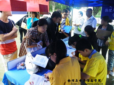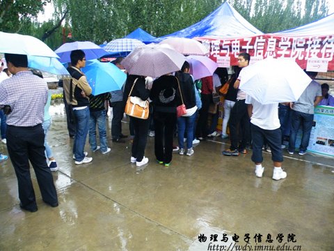 然而天不作美,就在迎新工作紧张而有序的准备过程中却下起了下雨,但这完全没有阻挡到大家迎新的步伐,大家齐心协力冒雨将迎新的地点搬到了公司办公室,迎新工作在当日上午8:00准时开时。各员工会干事以热情的微笑及周到的服务接待他们,2012级的分班主任也到了迎新的现场,为新生及家长解答疑问,赢得了广大新生及家长的满意。截至18:00,公司共接待新生160余名。