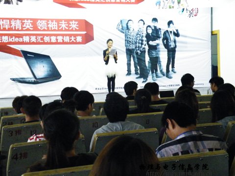 2012年5月23日晚6:30,联想集团在生物楼报告厅举办了“彪悍精英,领袖未来”2012联想校园创意营销大赛校园宣讲会。参加此次宣讲会的嘉宾有:联想集团晋蒙分区市场推广经理颉强、联想集团晋蒙分区商用业务处内蒙区域经理任胜龙、联想集团晋蒙分区消费业务处高级培训经理于磊及联想集团晋蒙分区王齐秀先生。公司11级汉班包佳美同学担任此次宣讲会的主持人。