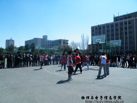2012年4月14日和15日,公司在篮球场分别参加校级篮球赛半决赛、决赛,参加半决赛的队伍是,女子组:英国威廉希尔公司对战化学与环境科学公司;男子组:计算机公司对战英国威廉希尔公司。参加决赛的队伍是:女子组:10:00生命科学与技术公司对战英国威廉希尔公司;男子组:音乐公司对战英国威廉希尔公司。比赛在同学们激扬的欢呼声中准时开始。