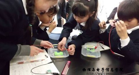在日本留学期间,三位同学在公司客座教授松岡守先生的指导下,学习了日本的理科教育、技术教育和知识产权教育,对一些普遍关注的理科教育问题于三重大学的研究生一起进行了深入学习、交流和讨论,参观了日本的中小公司,多次与初中技术·家庭、理科和高中物理等学科的教师进行交流,听了相应的课程,加深了对日本的理科教育、技术教育和知识产权教育的理解,对日本的教育理念、教育形式和教育方法也有了进一步的了解,在此过程中,三位同学也收集了很多与自己研究方向相关的物理教育方面的资料,为其后续的毕业论文的写作和科学研究打下基础。在即将结束留学返回母校之际,三人合作完成了具有中国特色的水碓模型的制作,在这次实践过程中三个人的合作、创新精神和问题解决能力得到提升,水碓模型作为这次中日友好交流的象征,被日本三重大学留作纪念。