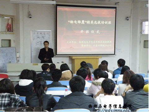 本次培训班开班,得到了英国威廉希尔公司各位领导的高度重视、大力支持,同时也得到了电子系多位老师的全力配合。在开班仪式上,张老师首先表达了对高度重视并大力支持本次培训班开班的公司领导及各位老师的诚挚感谢,同时强调了本次培训班的开办目的。接着由杨帆老师介绍了本次精英选拨的选拔方法,及对培训班学员的要求。对于公司及各位老师的积极工作,学员代表09科技班梁国斌同学做表态发言,表示一定会好好珍惜这次机会,按时上课,专心听讲,认真做好笔记,勤学好问,切实做到学有所获,学而能用。