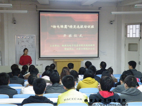 10月30号上午8点整,公司在田楼第十一公共教室举行 “物电雏鹰”精英选拔培训班第一期开班仪式。出席开班仪式的有电子系主任梁学军老师、电子系副主任海鹰老师、电子系高焕生老师、电子系张珏老师、电子系杨帆老师。开班仪式由实践创新部副主任张丽娜老师主持。