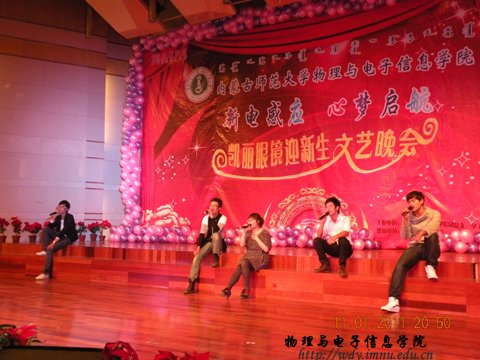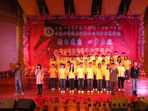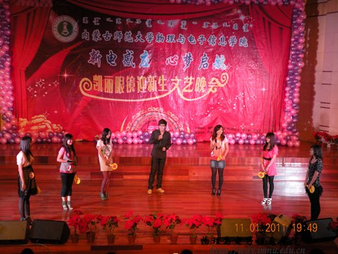 11月1日晚7:00公司在逸夫楼音乐厅举办了“新电感应,心梦启航”2011年迎新生文艺晚会,公司领导阿梅老师、吉日嘎拉老师、何小龙老师和办公室主任斯琴高娃老师、物理系副主任那日苏老师、实验中心主任呼力雅格其、副主任张天臣老师、以及团总支、学工办、各班班主任老师和新老生五百余人出席了本次晚会。