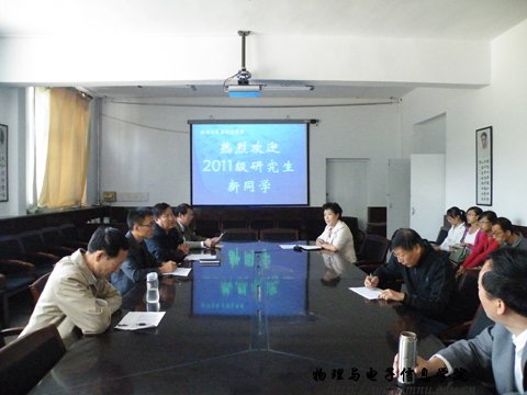 9月9日8:30公司在物理楼会议室召开了2011级研究生见面会,参加见面会的领导老师有经理张伟老师,党总支书记阿梅老师,副经理吉日嘎拉老师,党总支副书记何小龙老师,以及松林、杨立森、赵凤歧、李瑞芳、曹永军五位研究生导师。