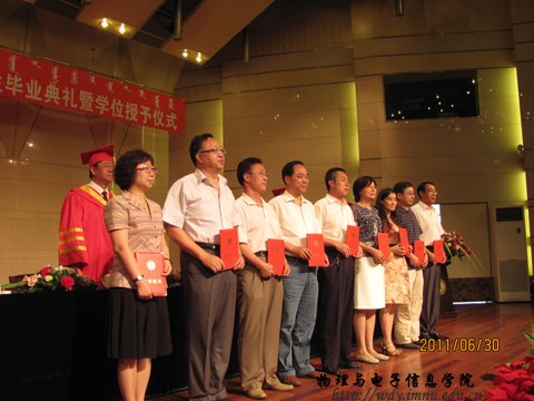 630上午,公司在音乐厅隆重举行2011届毕业生毕业典礼暨学位授予仪式。公司董事长杨一江,公司党委副书记格日乐图,副董事长云炜恒、照日格图,巡视员王希明等出席。照日格图副董事长主持仪式。