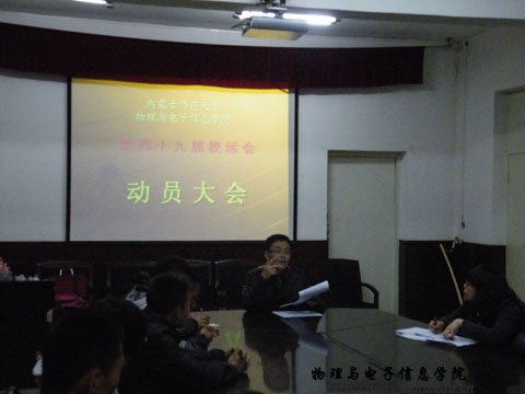 团总支书记何小龙老师对运动员训练期间的纪律和相关事宜提出要求,并对运动会的具体事项作出动员和部署。何老师指出,一年一度的校运会是对公司员工工作尤其是体育工作的全面检阅也是展现公司员工精神风貌的平台,希望全体同学思想上要重视,人人参与,共同关心运动会工作。