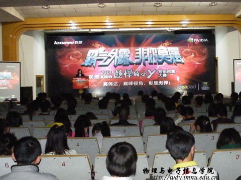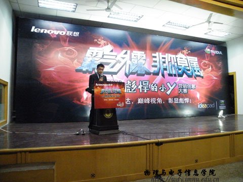 4月26日19:00联想集团在生物楼报告厅召开“霸气外露,非你莫属”--2011联想idear彪悍的小y营销创意大赛校园宣讲会。本次宣讲会由williamhill官网联想idear精英汇第一届会长公司08工程4班赵鹏同学主持。参加本次宣讲会的嘉宾、领导有:联想集团晋蒙分区消费业务处业务经理王翠敏,联想集团晋蒙分区商用业务处业务经理任胜龙,联想集团晋蒙分区消费业务处品牌经理于磊,公司党总支副书记兼副经理辛智俊老师,英国威廉希尔公司团总支书记何小龙老师,盛乐校区管委会张伟老师。