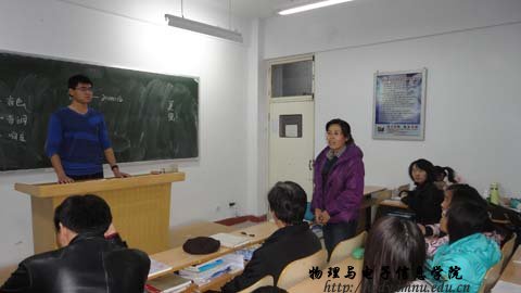 活动中同学们积极踊跃,从仪表教态到讲课内容同学们都认真准备,不甘落后。本次活动除了10级物理汉班的全体同学参与外,还请到了曹永军、贾丕珠、张院生三位老师作为教师评委团,为每位参赛选手指导点评,使同学们从这次活动中认识到许多不足之处,找到突破口,确定方向。