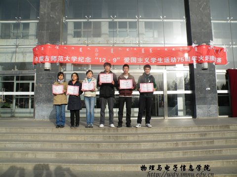 12月9日即“一二·九”员工爱国运动七十五周年之际,公司积极配合校员工会参加了于图书馆前举行的校园火炬接力赛。首先进行的是由五男五女组成的十人竞赛组,并且取得了团体总分第三的好成绩。随后参加了由三男三女组成的员工会趣味组。