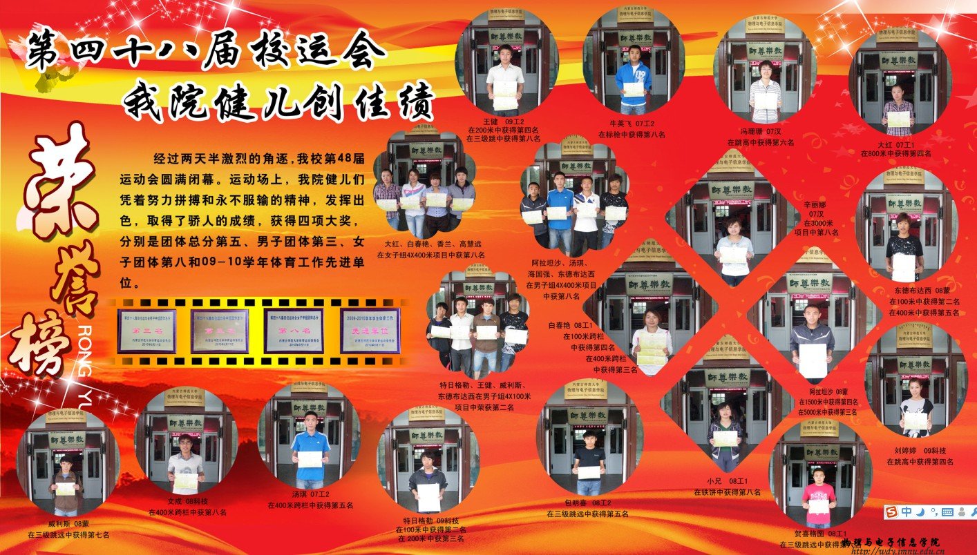 经过两天激烈的角逐,公司第48届运动会圆满闭幕。运动场上,公司健儿们凭着努力拼搏和永不服输的精神,发挥出色,取得了骄人的成绩,获得四项大奖,分别是团体总分第五、女子团体第八、男子团体第三和09-10学年体育工作先进单位。