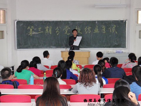 5月27日下午3:00,在田八共举行了公司分党校第三期入党积极分子培训班结业考试。考试由何小龙老师及党支部成员担任监考,本次考试旨在检验各积极分子在上党课期间所获得的成果。考试结束后在物理楼前大家合影留念。