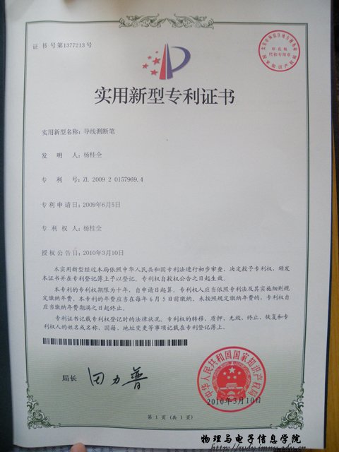 2009年6月,公司07工程2班杨桂全的科技作品“导线测断笔”在公司、公司的支持下申请了中国国家专利,2010年3月10日在中国国家专利网上公布,专利号:ZL200920157969.4。