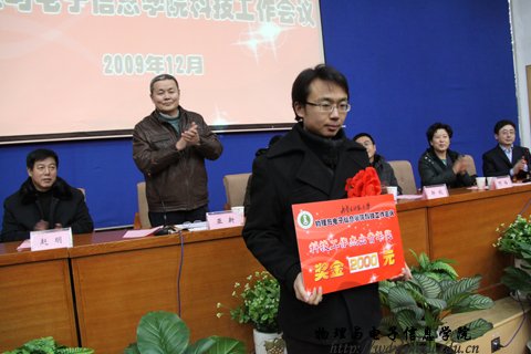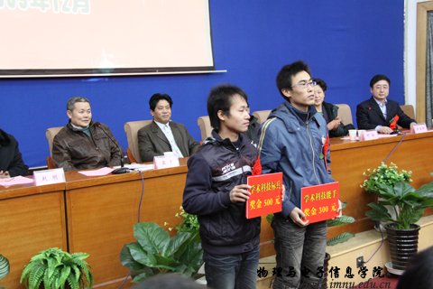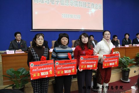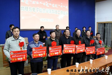 随后,公司党总支书记阿梅宣读了公司“十一五”期间科技工作先进个人和员工学术科技活动先进个人及公司第二届员工课外学术科技活动优秀作品、优秀指导教师的表彰决定。对近四年涌现出的先进集体及个人进行了表彰奖励。授予特古斯教授突出贡献奖,奖励5000元;授予郭子政等10名教师科技工作先进个人奖,奖励2000元;授予那日苏博士科技工作杰出青年奖,奖励2000元;授予萨茹拉等4名教师科技工作鼓励进步奖,奖励1000元。授予杨桂全同学“学术科技标兵”称号,奖励500元;授予蓝荣同学“学术科技能手”称号,奖励300元;同时,表彰在公司第二届员工课外学术科技作品竞赛中荣获一等奖的何玮等3名同学,发奖金300元;荣获二等奖的包文君等7名同学,发奖金200元;荣获三等奖的王瑞民等10名同学,发奖金100元;授予梁学军等6人为优秀指导教师,授予07工程2班、09科技班优秀组织奖。与会领导为获奖师生颁发了奖金和荣誉证书,获奖教师代表郭子政教授在大会上作了发言。