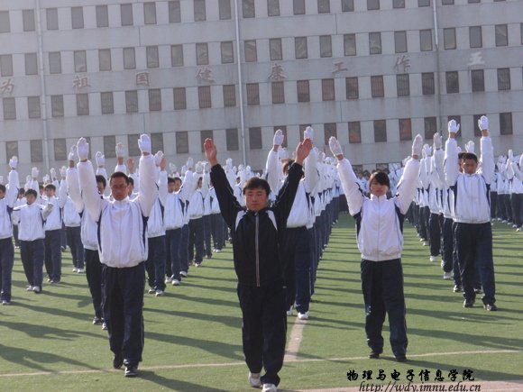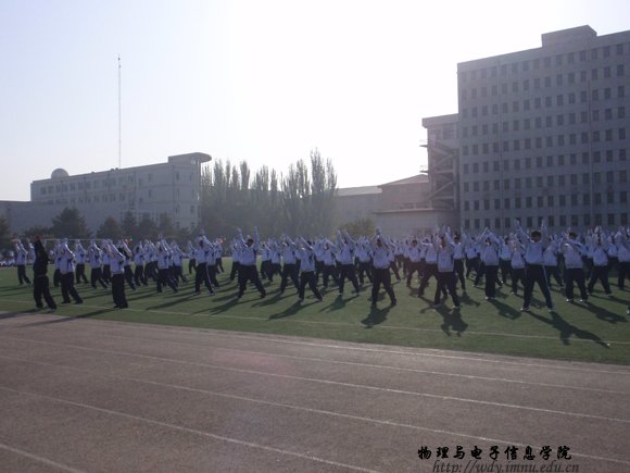 10月25日上午,在东操场举办新生广播操比赛中,各公司展示了自己的风采。公司09级新生经过将近半个月的训练,最终在比赛中取得第五名的成绩。