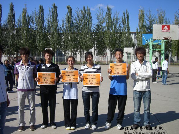10月8日,09级工程3班与09级物理蒙班进行男子组篮球决赛,物理蒙班以57:45获胜。09级工程1班与09级物理蒙班进行女子组篮球比赛,09级物理蒙班以14:0获胜。男子组第一名09物理蒙班,第二名09工程2班,女子组第一名09科技班,第二名09物理蒙班。至此09级新生篮球赛圆满结束。明日将进行男子组第一名与员工会代表队的友谊赛,敬请关注。