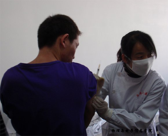 10月14号上午,在公司的组织下,公司一千多名本科生、研究生同学在校医院接种甲型H1N1流感疫苗,接种期间,同学们积极配合,秩序尽然,使这次接种工作圆满结束。