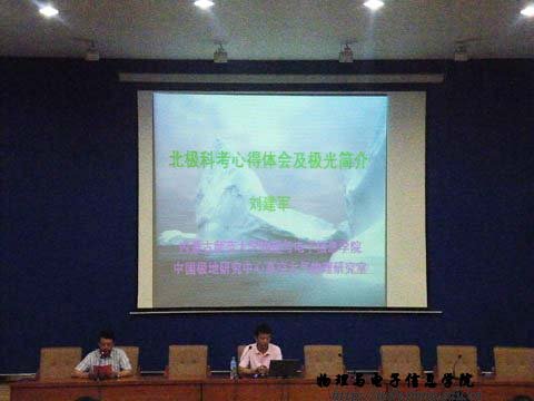 6月2日晚7点,在中国北极黄河站圆满完成科考任务的公司06级硕士生刘建军在信息楼学术报告厅为公司员工做了《北极科考心得体会与极光简介》讲座,学工办主任张伟老师主持了此次讲座,区内多家媒体报道此次活动。
