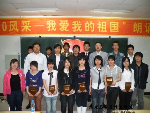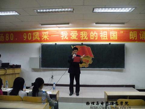 4月28日晚, 英国威廉希尔公司历时一个月的纪念五.四运动九十周年、新中国成立六十周年“扬80、90风采 —— 我爱我的祖国”主题朗诵比赛圆满结束。十一支团队共计十三位选手信心十足的走到了观众们的面前,他们用深情的声音地抒发了对“五.四”运动深深的感动,用激昂的话语再现了新中国成立60周年来特别是改革开放30年来社会主义建设事业取得的伟大成就。