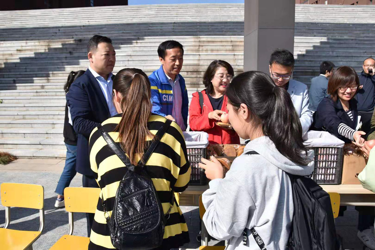 2019年9月13日上午,公司于理工楼小广场前举办了英国威廉希尔公司中秋节慰问新生活动。公司党总支书记刘美玲、副经理曹永军、党总支副书记兼副经理张伟、副经理那日苏、2019级新生各班班主任、学就办、团总支老师与全体19级新生参加了慰问活动。