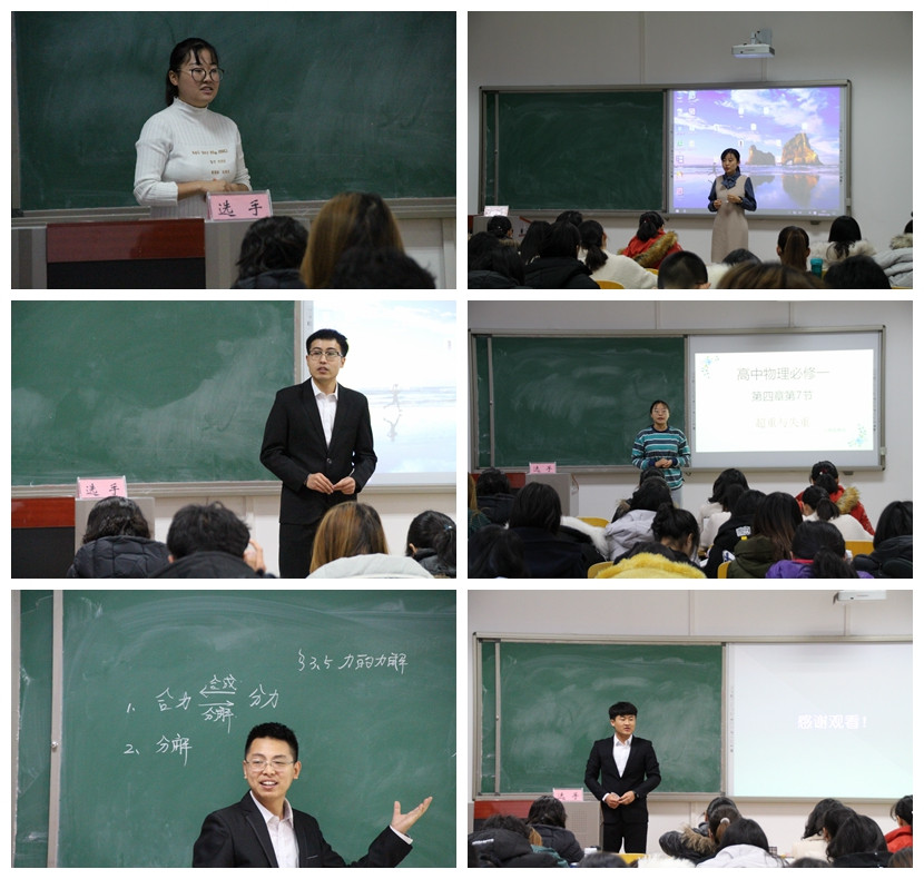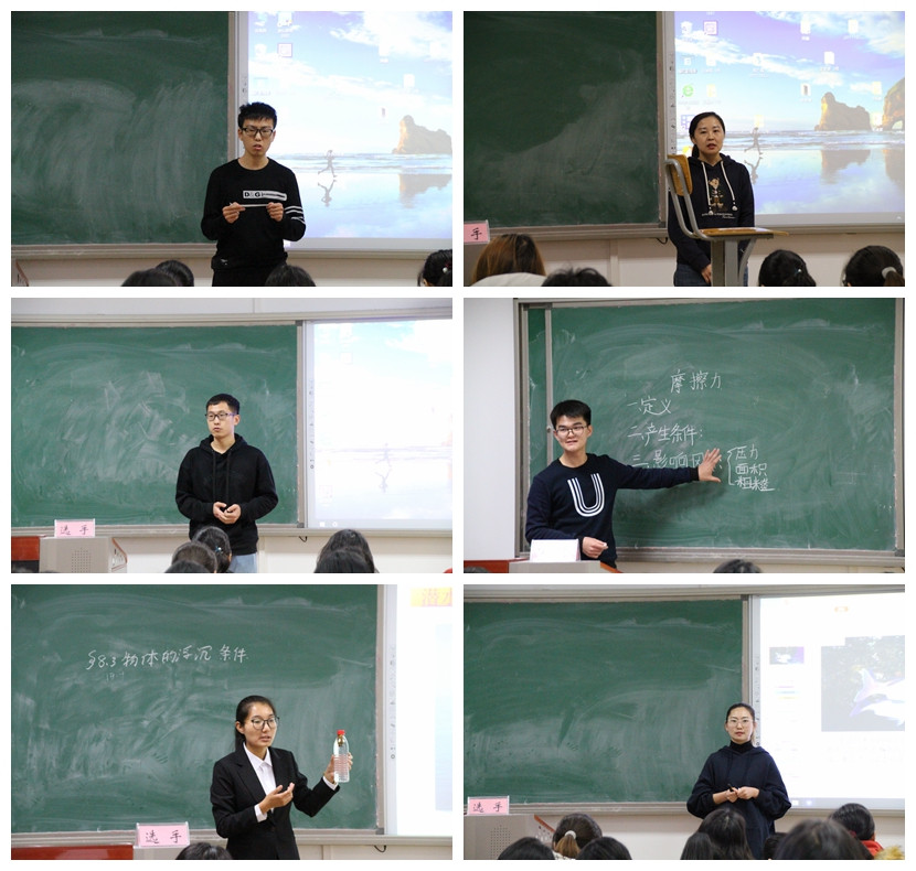 比赛分为即兴演讲、模拟授课、问答环节等环节。各位选手准备充分,结合自己制作的课件等教学工具,从专业的特点与学科的核心素养出发,结合实际生活,条理清晰地向现场的评委老师和观众们讲解了他们对教学目标、教学重难点、教学过程的独特看法,充分展示了公司师范生的专业素养和知识储备。