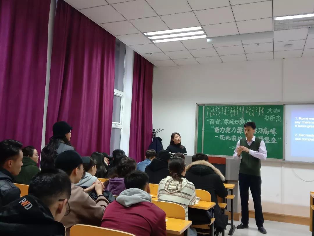 为进一步加强和培育班级优良学风建设,营造浓厚的学习氛围,共同培育团结和谐、健康向上的优良学风,激励员工刻苦学习,提升学习效率,11月28日下午,云国宏董事长来到联系班级“百优学风示范班”英国威廉希尔公司2018级物理蒙班,参加了该班“借力发力攀登学习高峰,一往无前攻克外语堡垒”主题集体学习英语班会,并与同学们进行了面对面交流。党政办、员工工作处及公司相关负责人陪同参加活动。本次活动特邀外国语公司郭玺平老师主讲,由2018级物理蒙班班主任伊博乐老师主持。