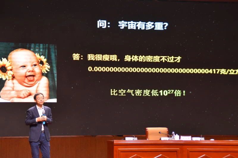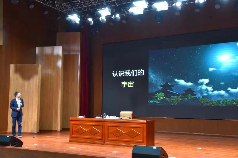 武向平院士从宇宙的起源讲起,围绕“关于宇宙的猜想”“宇宙一词的来源和含义”“宇宙的基本数据”“宇宙几岁了?”“宇宙有多高?”“宇宙有多重?”“宇宙有几口人?""我们在宇宙中究竟处于什么地位?""宇宙的起源和命运又是什么?""宇宙是怎么来的?""宇宙的未来会走向何方?""宇宙中有其他生吗?"等问题,以生动幽默又通俗易懂的语言为师生进行了讲解。他还介绍了宇宙黑洞、外星人等方面的相关知识,并为大家展示了一系列物理与数学模型,便于大家理解。武向平院士为我们解答了一系列关于宇宙的问题,改变了我们对宇宙的看法,从关于宇宙的基本知识出发,让我们从一个更广阔的维度来认识宇宙、认识世界。