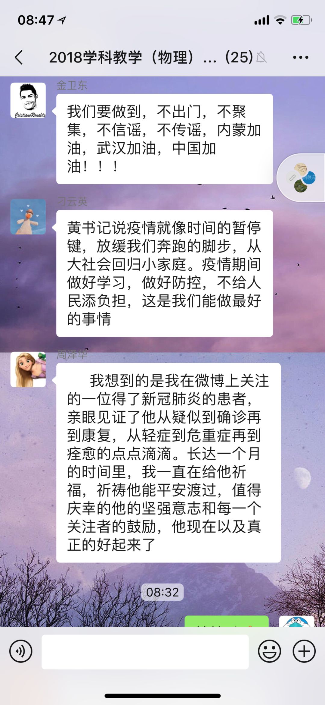 物电院的学子们分布在祖国的五湖四海,却又因为同一个契机云相聚在这开学第一课的现场。我们隔离病毒,但不隔离爱,这个独特的开学第一课让我们感受到了爱与信心。