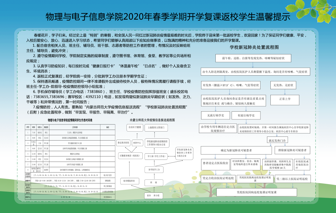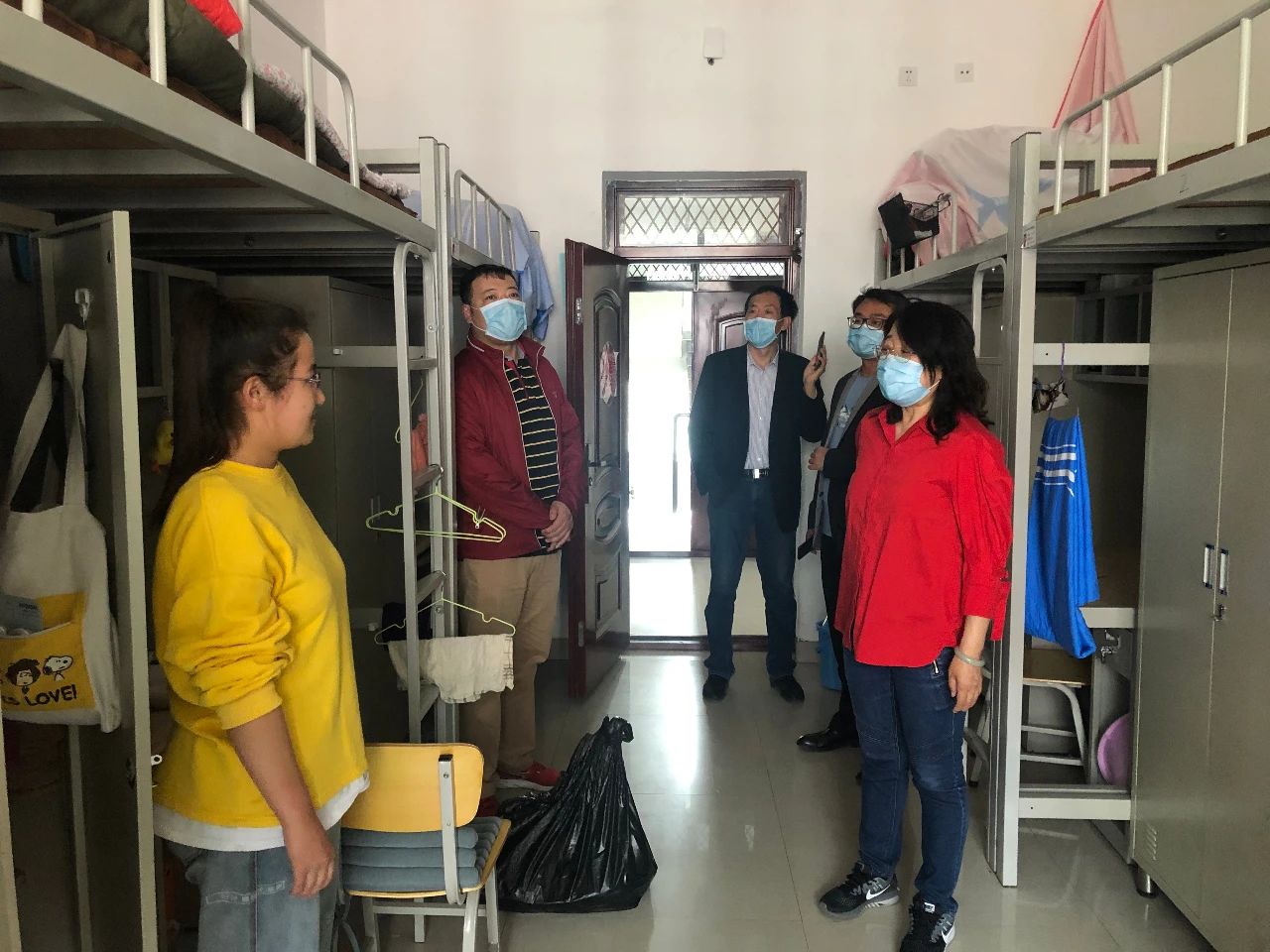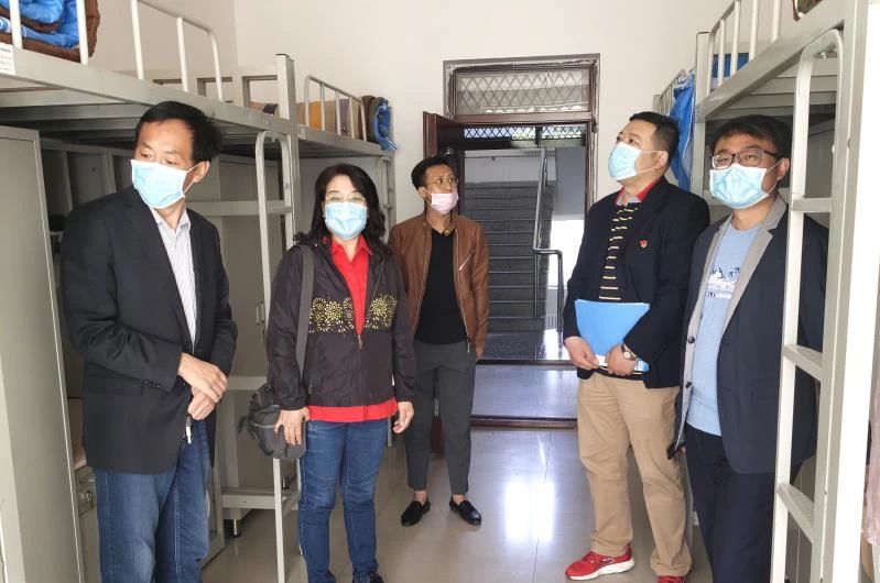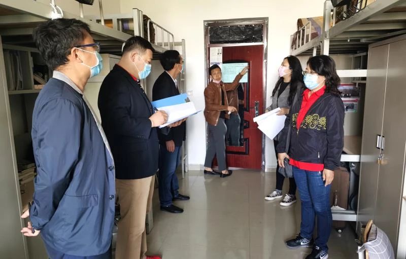 为扎实做好2020年春季学期返校复课工作,5月13日,公司领导刘美玲、曹永军、张伟、那日苏以及辅导员、班主任深入理工楼教室、实验室、员工公寓检查指导疫情防控和返校复课准备工作。