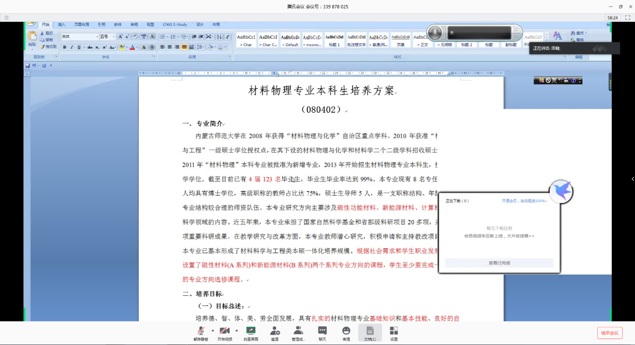 随后,各系主任针对所属专业的培养方案中的培养目标、毕业要求、课程设置、实践环节设置等方面做了详细的汇报。物理系副主任朝克夫老师汇报了“物理学专业(师范)本科生人才培养方案”;电子系副主任包秀荣老师汇报了“电子信息科学与技术(师范)本科生人才培养方案”;电子系主任张丽娜老师汇报了“电子信息工程专业本科生(师范)本科生人才培养方案”;材料系主任田晓老师汇报了“材料物理专业本科生(师范)本科生人才培养方案”。