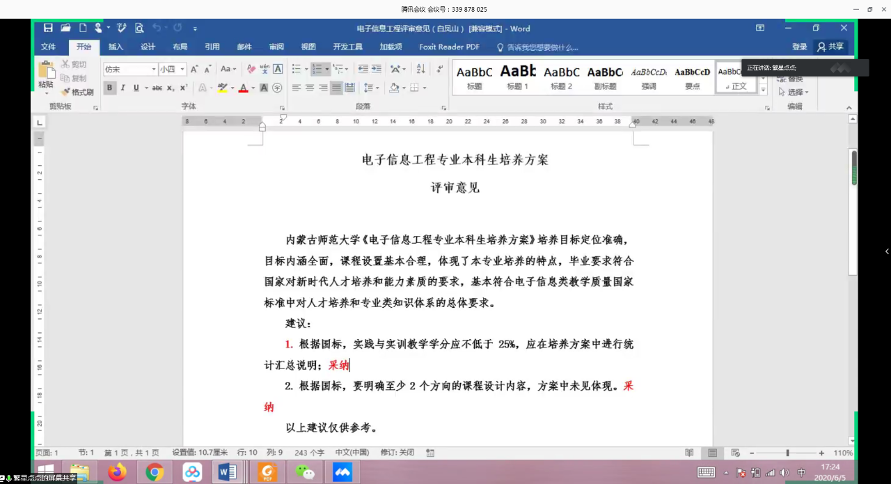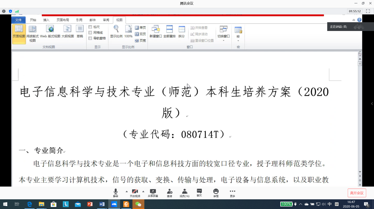 6月5日下午,公司通过腾讯会议召开各专业2020版本科人才培养方案讨论会议。本次会议由曹永军副经理主持,公司教学委员会全体成员、各系主任、副主任参加本次会议。