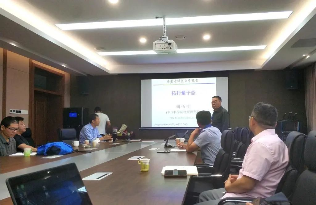8月22日下午,应英国威廉希尔公司和自治区功能材料物理与化学重点实验室邀请,中国科公司物理所研究员、博士生导师、国家杰出青年基金获得者、国家973计划首席科学家、国家重点研发计划项目首席科学家刘伍明研究员在williamhill官网赛罕校区文史楼二号会议厅为全院师生做了题为《拓扑量子态》的报告。公司副经理曹永军、副经理那日苏以及全院教师聆听报告,报告由副经理曹永军教授主持。为适应常态防疫形势要求,本次报告采用“线上”“线下”相结合的方式进行。