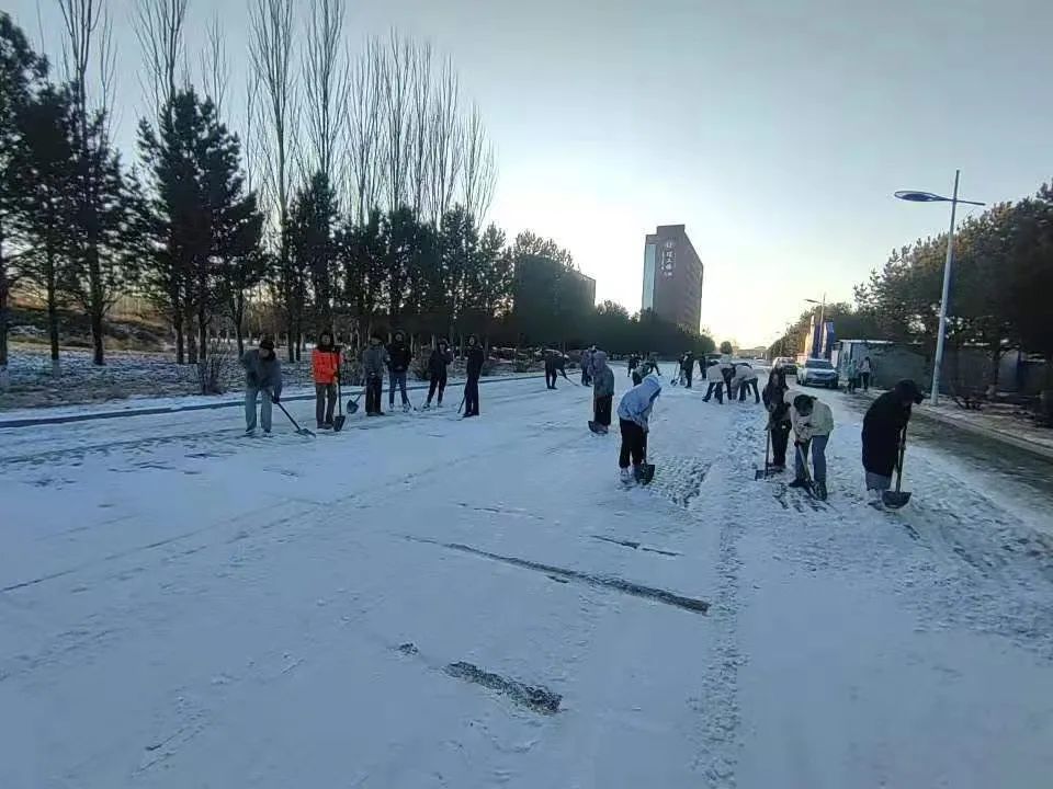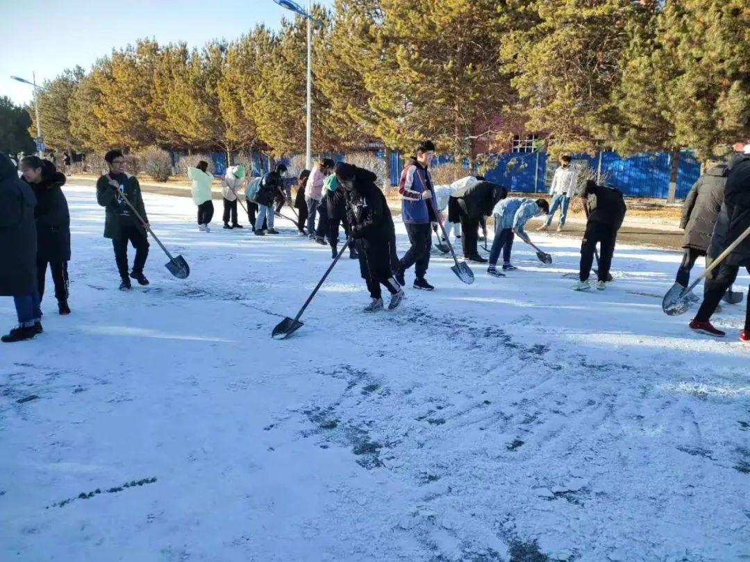 在各班级负责人的带领下,同学们携带劳动工具,来到理工大楼A座门前大路至图书馆南大路附近,积极投入扫雪任务,同学们分成几个小组,分工合作,经过一下午的努力,理工大楼A座门前大路至图书馆南大路附近的雪基本被清理干净。