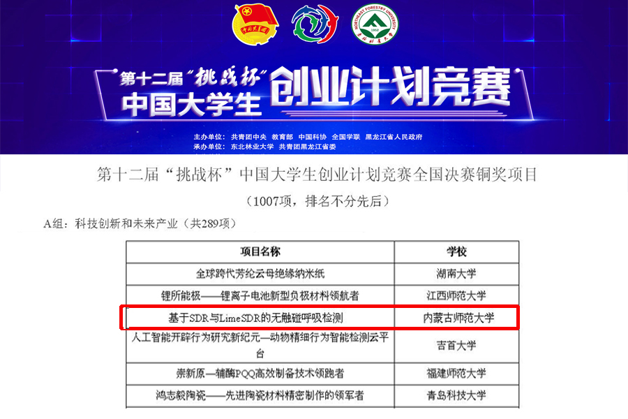 近日,第十二届“挑战杯”中国老员工创业计划竞赛全国决赛落下帷幕,公司取得历史性突破,公司杨帆老师指导的“基于SDR与LimeSDR的无触碰呼吸检测”项目获第十二届“挑战杯”中国老员工创业计划竞赛全国决赛“科技创新和未来产业组”铜奖项目,这是公司在“国字号”比赛中再次取得的一项大奖。