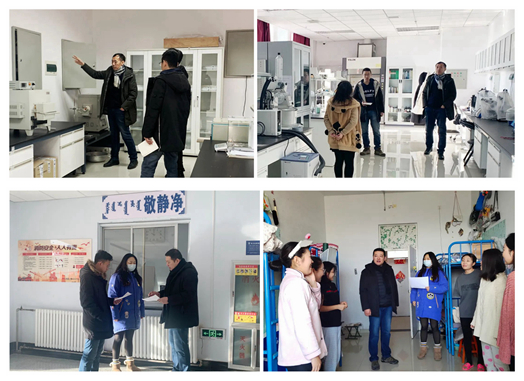 此次安全大检查分三组,第一组由公司党委书记刘美玲、副经理那日苏带队,检查了理工楼A座办公区、教室及本科实验室;第二组由副经理曹永军带队,检查了理工楼A、B座科研实验室;第三组由党委副书记兼副经理张伟带队, 检查了员工活动区及宿舍区。检查组就办公区、教学区环境卫生、通风、消杀以及疫情防控工作,实验室水、电、暖、火、危废品等安全隐患及落实安全管理规定,员工活动区、宿舍区等人员密集场所卫生状况、防疫情况及安全教育宣传等,逐一进行了安全检查。针对发现的安全隐患,要求列出整改台帐并在限期内完成整改。
